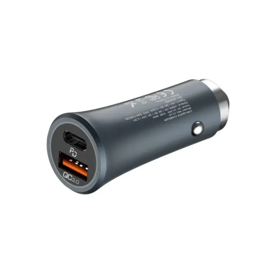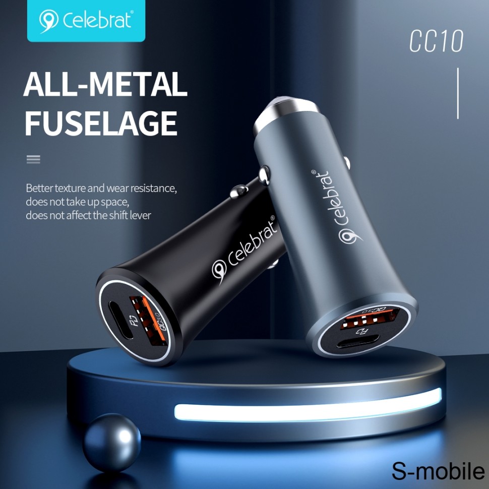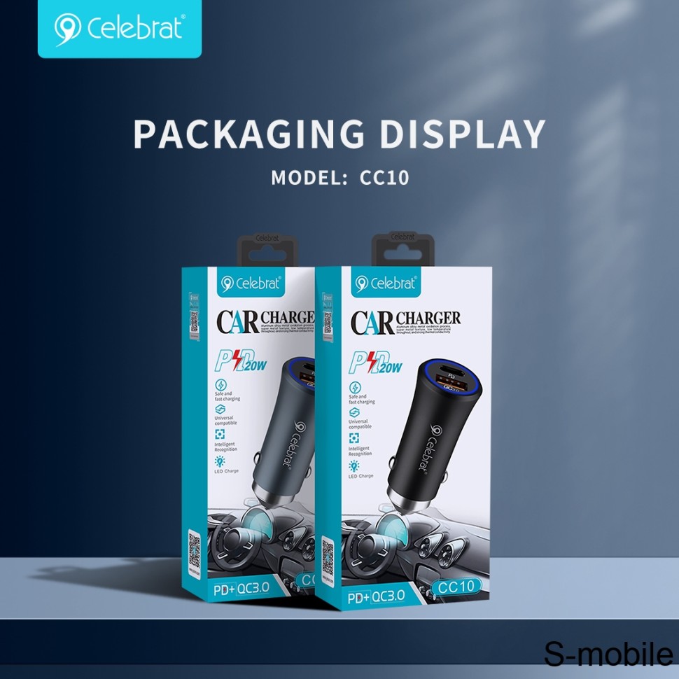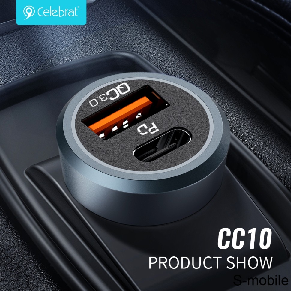 شارژر فندکی Celebrat CC10 با پشتیبانی از شارژ سریع QC 3.0 و PD، توان ۲۰ وات، دو پورت خروجی و بدنه فلزی — راهحلی ایدهآل برای شارژ سریع و امن موبایل و تبلت در خودرو است.